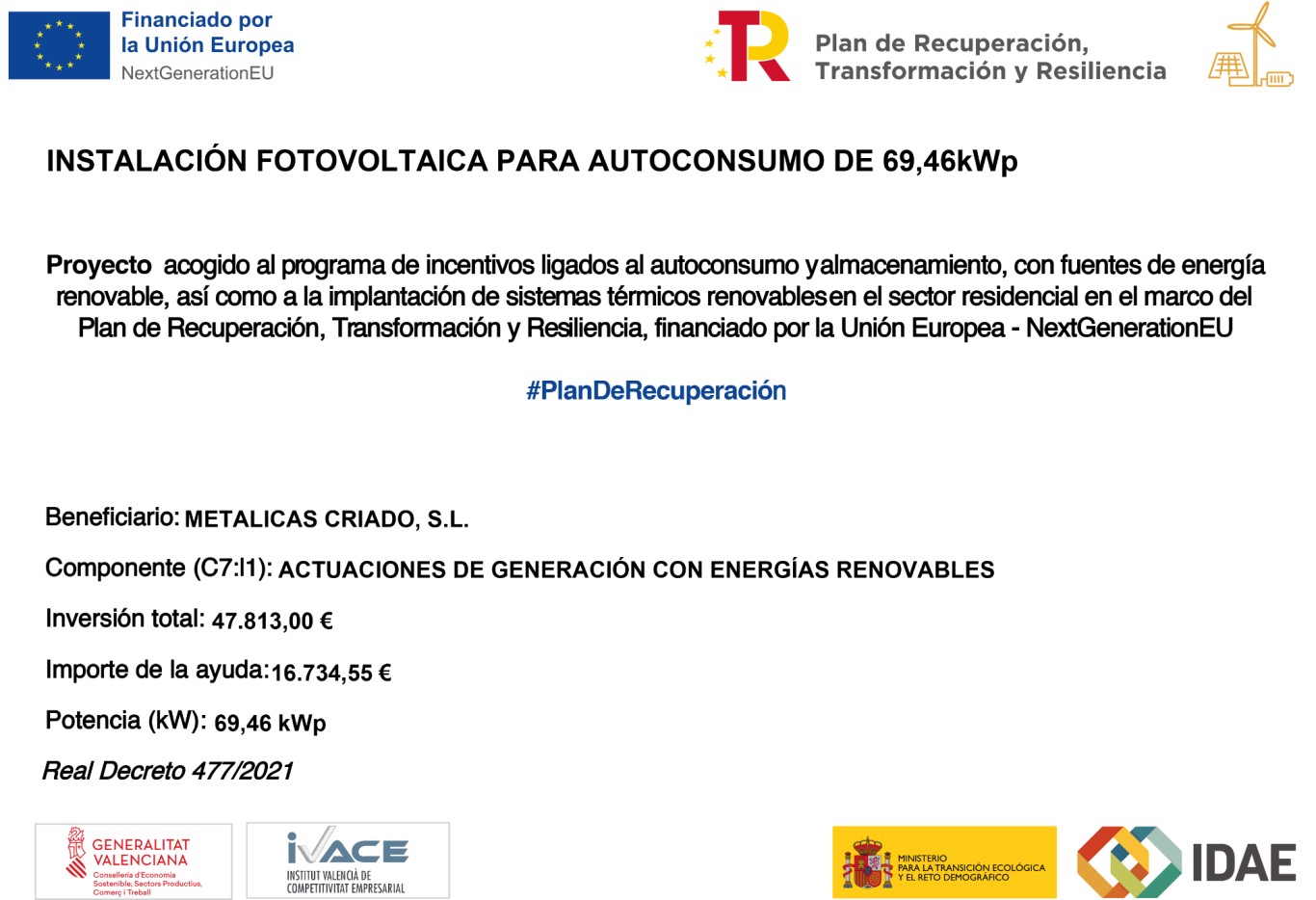 METÁLICAS CRIADO fue fundada en 1991 por Joaquín Criado padre como una Comunidad de Bienes.
